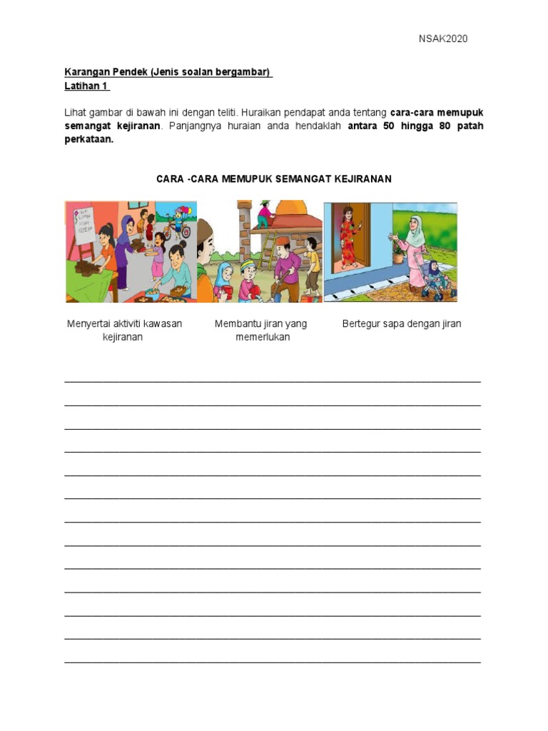 Karangan jenis ini memerlukan anda mempunyai pengetahuan yang penelitian dan pemahaman luas dalam pelbagai bidang seperti terhadap tajuk agar isi yang ekonomi sejarah kebudayaan sains dibincangkan tidak terpesong. Pelajar lain diminta meneka lakonan tersebut. Tip Adalah lebih baik jika adik semua menggariskan perkataan-perkataan yang menjadi kata kunci dalam soalan itu.
